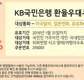국민은행 환율우대쿠폰 썸네일형 리스트형 국민은행 환율우대쿠폰 2016년 말까지~쭉!!! 국민은행 환율우대쿠폰 완전 초간단! 국민은행 최대 70% 할인가능한 할인쿠폰 소개드립니다. 시럽어플에서 다운받아서 사용하시면 초간단!!어렵지 않겠쥬? 환율우대쿠폰 타은행 더 알아보기 2016/03/06 - [Coupon] - 농협 환율우대쿠폰 12월말까지 문제없다!!2016/03/06 - [Coupon] - 외환은행 환율우대쿠폰 2016년 12월까지 더보기 국민은행 환율우대쿠폰 1월 31일까지~ 국민은행 환율우대 쿠폰 요즘 국제유가는 떨어지고 미국금리인상으로 환율은 오르고 환전하기 부담스러우실꺼에요~ 그래도 조금이라도 환전에 보템이 되고자 국민은행 환율우대쿠폰을 링크드립니다. 오른쪽 클릭하시고 다운받으셔서 출력제출하시면 됩니다. 참! 거래은행에 외화현찰이 있는지 먼저 확인하고 방문하시는건 센스중에 센스!! 달러화는 많이 있지만 기타통화는 적거나 혹은 없을 수도 있기 때문에~~!! 국민은행 환율우대쿠폰으로 조금이나마 합리적인 환전하시길 바래요~!! 기타 다른은행의 쿠폰을 찾으신다면 아래의 포스팅도 참조해 주세요!! 2016/01/07 - [Coupon] - 하나은행 환율우대쿠폰/외환은행 환율우대쿠폰 70% 더보기 국민은행 환율우대쿠폰 70% 국민은행 환율우대쿠폰 연말까지 넉넉하게 활용가능해요~ 똑똑한 여행족을 위한 필수품!! 바로바로 환율우대쿠폰일텐데요~ 겨울방학 혹은 비수기 여행을 대비해서 미리미리 거래은행의 환율우대쿠폰을 챙겨둬야 하겠습니다. 하지만 환율우대쿠폰보다 중요한 건 바로 환전의 타이밍!! 국제정세를 잘 읽고 환전하는게 우대받는 것보다 훨씬 클꺼에요~(하지만 그 것을 알면 벌써 부자 되었겠죠? ㅎㅎ) 국민은행 70% 환율우대쿠폰과 함께 즐거운 여행되세요~!! 기타의 다른 환율우대쿠폰의 궁금하시다면 아래의 링크를 참조해 주세요~ 2015/11/18 - [Coupon] - 농협은행 환율우대쿠폰 70% 2015/11/18 - [Coupon] - 하나은행 환율우대쿠폰/외환은행 환율우대쿠폰 최대 80% 2015/08/17 - [Infom.. 더보기 국민은행 70% 환율우대쿠폰 국민은행 환율우대쿠폰 : 2015년 12월까지 외환은행 환율우대쿠폰에 이어 2탄 국민은행 환율우대쿠폰입니다. 국민은행 환율우대 쿠폰 받는방법 1. 시럽어플을 다운받는다. 시럽어플 바로가기 2. 쿠폰을 클릭한다. 3. 쿠폰팩 클릭! 4. 국민은행 환율우대쿠폰 클릭 후 다운로드 받는다. 5. 유의사항을 잘 읽어보고 사용한다. 6. 도움이 되었다면 공감을 클릭한다. 차~암~ 쉽죠~?? 더 많은 공유를 위하여 추천 부탁드리고 바로 사용하실 분들은 하단의 링크클릭하시면 시럽어플 문자신청 페이지로 이동합니다. 시럽어플 바로가기 기타 환율우대쿠폰 바로가기 포스트 2015/07/01 - [Coupon] - 외환은행 70% 환율우대쿠폰 2015/07/02 - [Coupon] - 신한은행 60% 환율우대쿠폰 2015/07.. 더보기 이전 1 다음