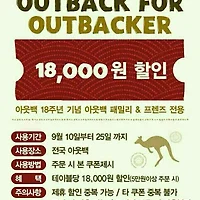 | 아웃백 9월쿠폰 (18000원 할인 임직원 쿠폰) (0) | 2015.09.14 |