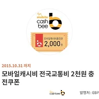 | 캐시비 2000원 충전쿠폰 (0) | 2015.09.17 |