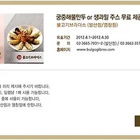 | 불고기브라더스 궁중해물만두 or 생과일주스 (0) | 2012.04.11 |